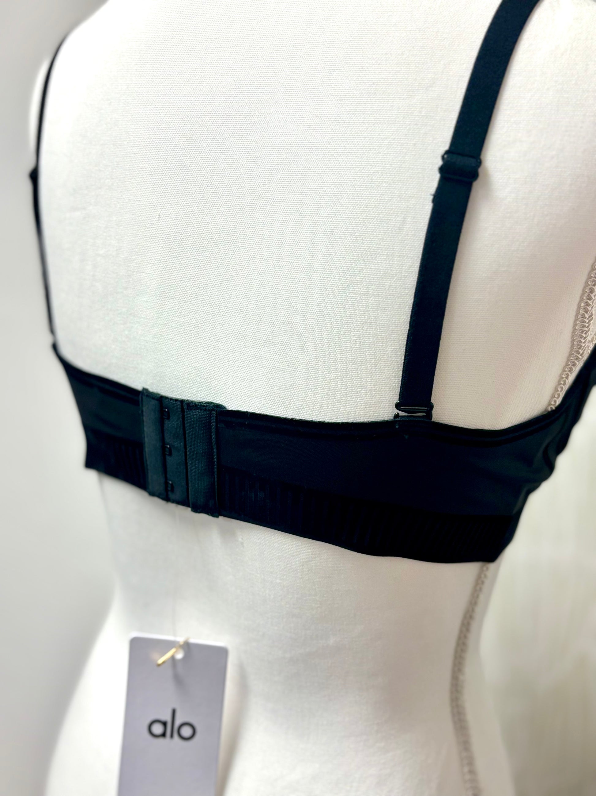 Alo Black on Black Bra with Velvet Detail and Adjustable straps